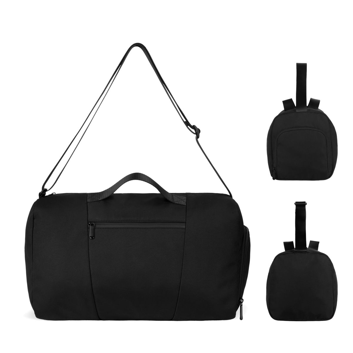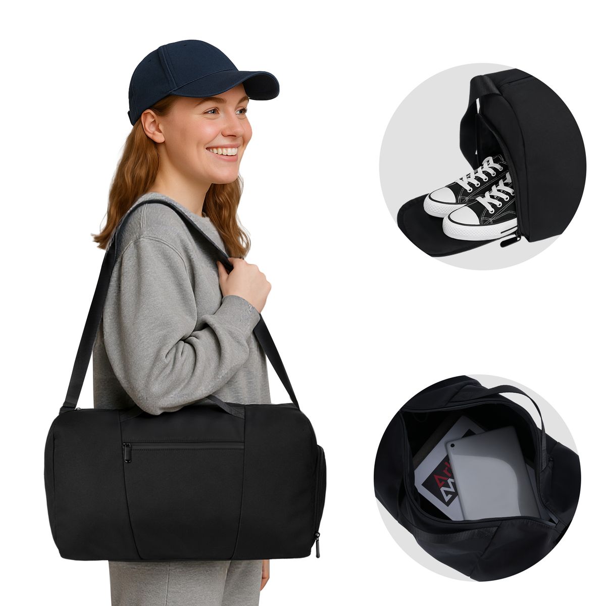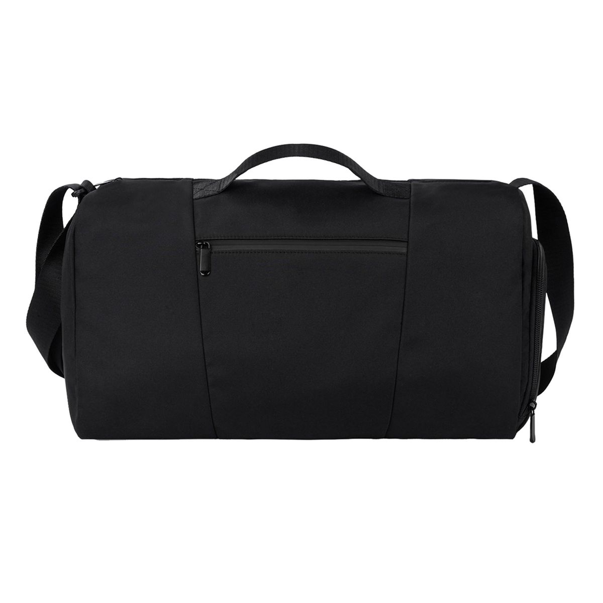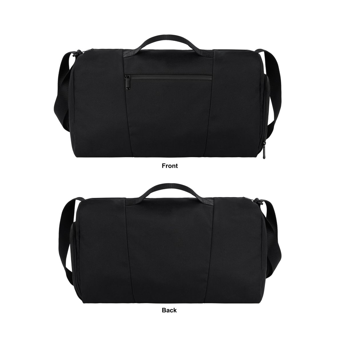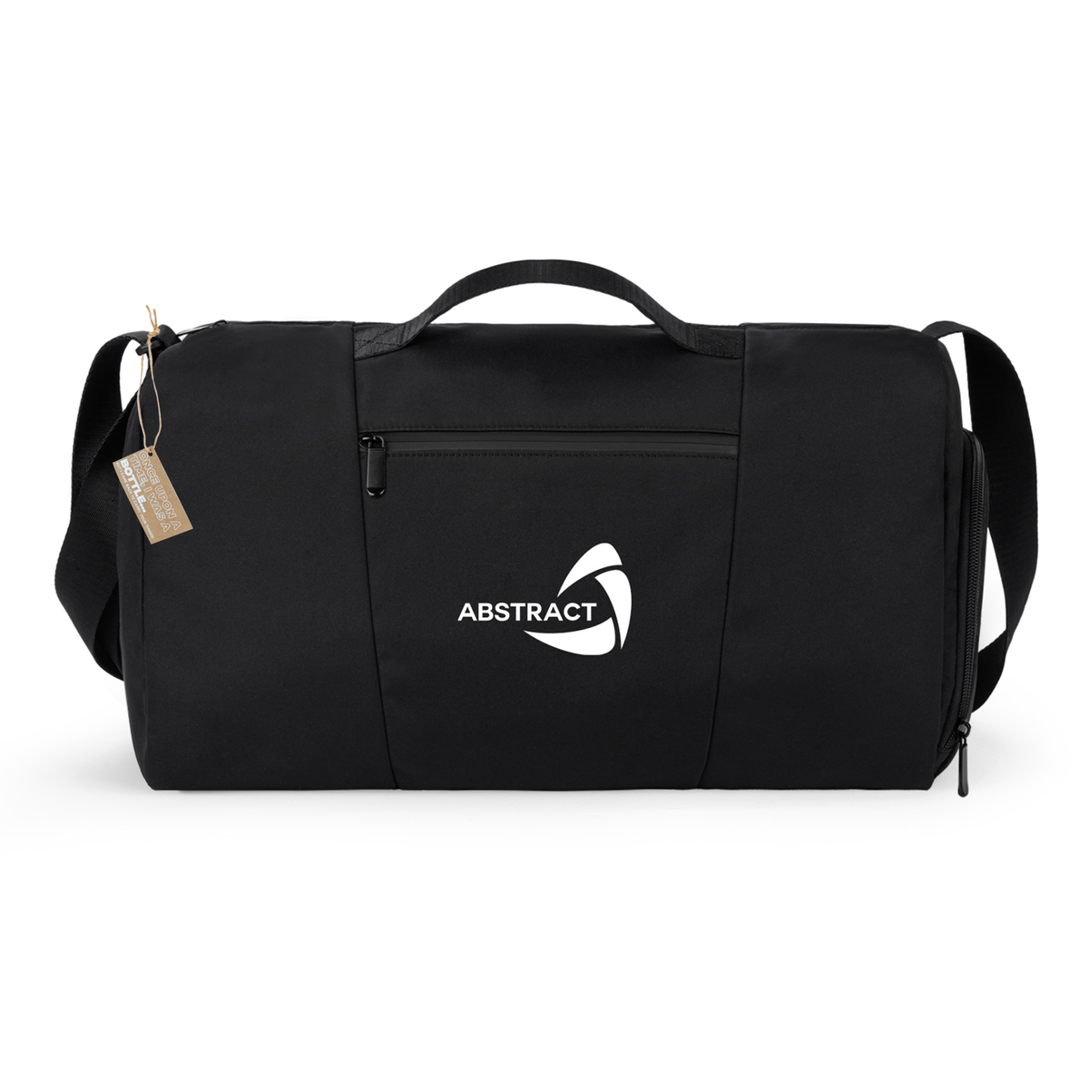 This duffel bag is made from durable RPET polyester and showcases a clean, minimalist design. The travel bag includes a spacious main compartment with a secure zip closure, a front zippered pocket for quick-access items, and a side zip pocket that extends internally—ideal for storing shoes separately, also including one interior mesh pouch and interior two side pockets. A smooth, water-resistant zipper and adjustable shoulder straps add comfort and convenience. Versatile and functional, the practicable luggage bag is perfect for workout, travel, sports activity, tennis, yoga, fishing, hunting, camping, hiking and so on. Add your custom logo for a stylish promotional piece that keeps your brand in view all year long. Complies with CPSIA, Prop 65.