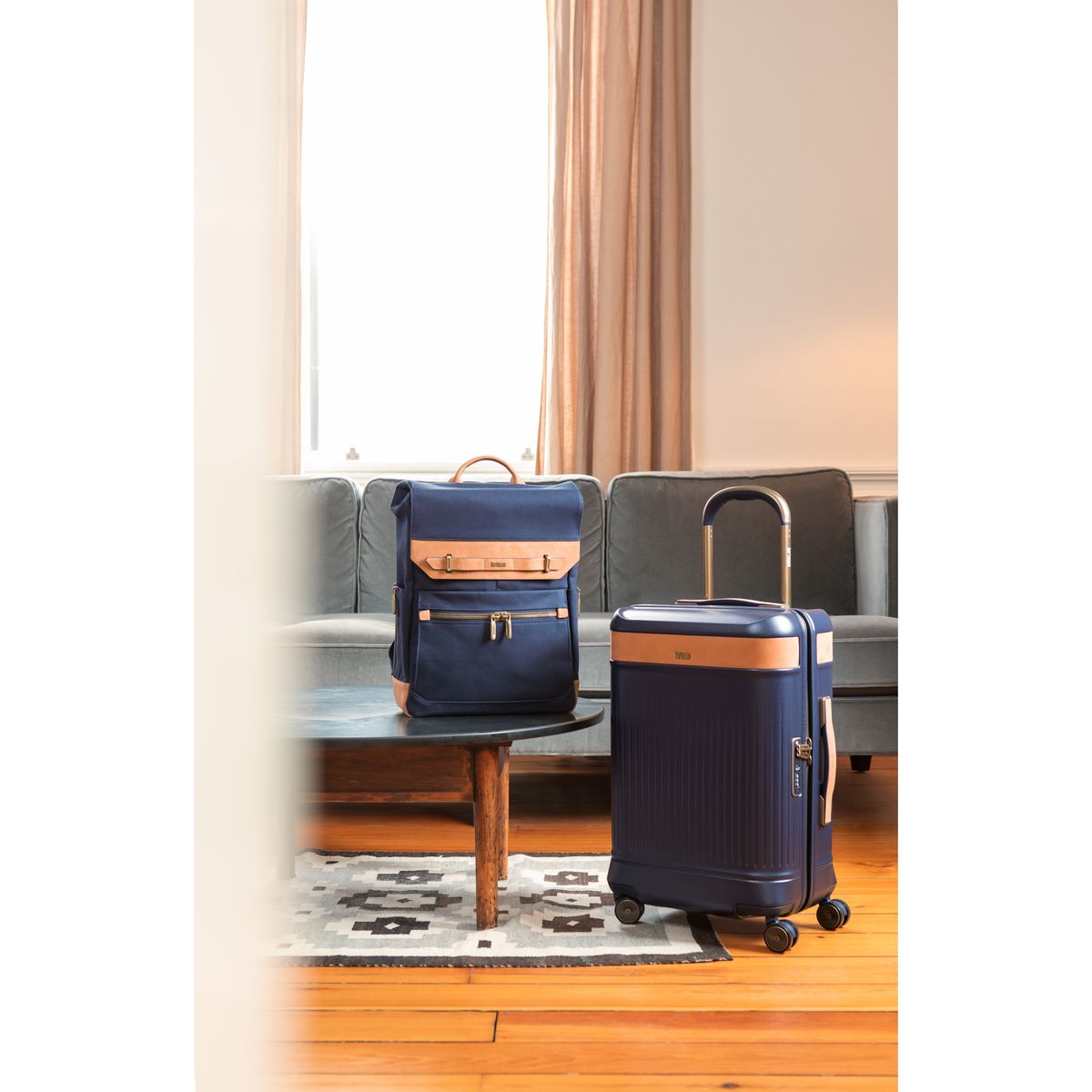Travel refined with the Hartmann Reserve Carry-On—a fusion of strength and elegance inspired by the curves of a crystal whiskey glass. Made from durable polycarbonate and full-grain aniline leather, it features a recycled liner, TSA-approved lock, magnetic ID tag, and 12-position contoured handle. Includes a compression packing cube and shoe bag in signature plaid. Finished with hand-painted wheels and a personalized leather bag tag for unmatched luxury on the go.